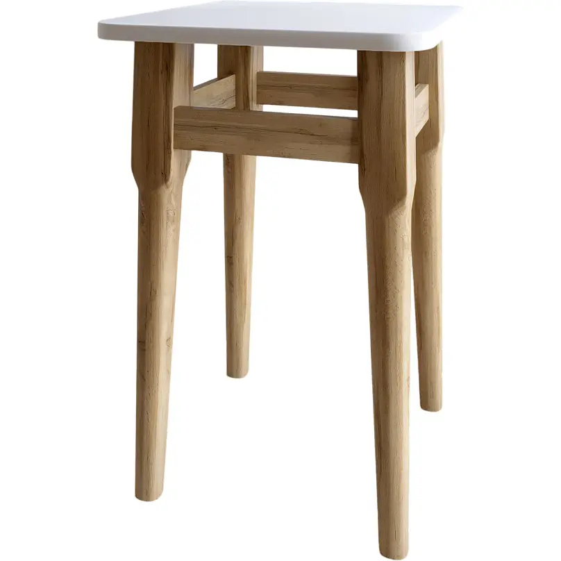 Столешница табурета изготовлена из ЛДСП Swiss Krono - высококачественного материала, сочетающего эстетику с прочностью и надежностью. ЛДСП Swiss Krono известен своей устойчивостью к механическим повреждениям, влаге и высоким температурам, что гарантирует долговечность мебели и сохраняет ее эстетический вид на долгие годы.