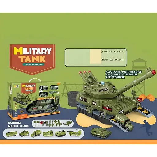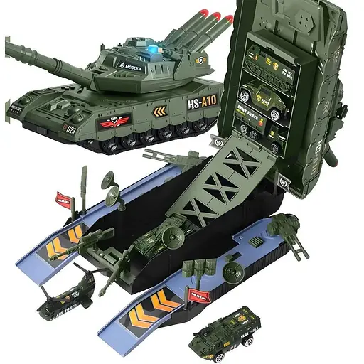 Танк-гараж HS 8010 A – уникальный игровой набор для детей, сочетающий функциональность и яркий дизайн. Этот гараж разлагается, открывая интерактивное игровое пространство с подсветкой, звуковыми эффектами и реалистичными деталями. В комплекте идут металлопластиковые мини-модели, подвижные элементы и декорации, делающие игру еще более интересной. Гараж станет отличным подарком для маленьких любителей военной техники и увлекательных приключений.