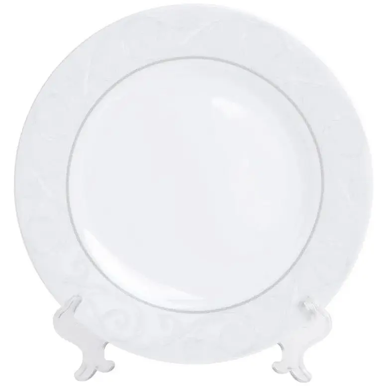 Обеденная тарелка - необходимый предмет посуды, который используется для подачи вторых блюд. Она изготовлена из костяного фарфора, который отличается особой изысканностью. Посуда из этого материала идеально подходит для сервировки праздничного стола. Тарелка украшена ненавязчивым растительным орнаментом.
