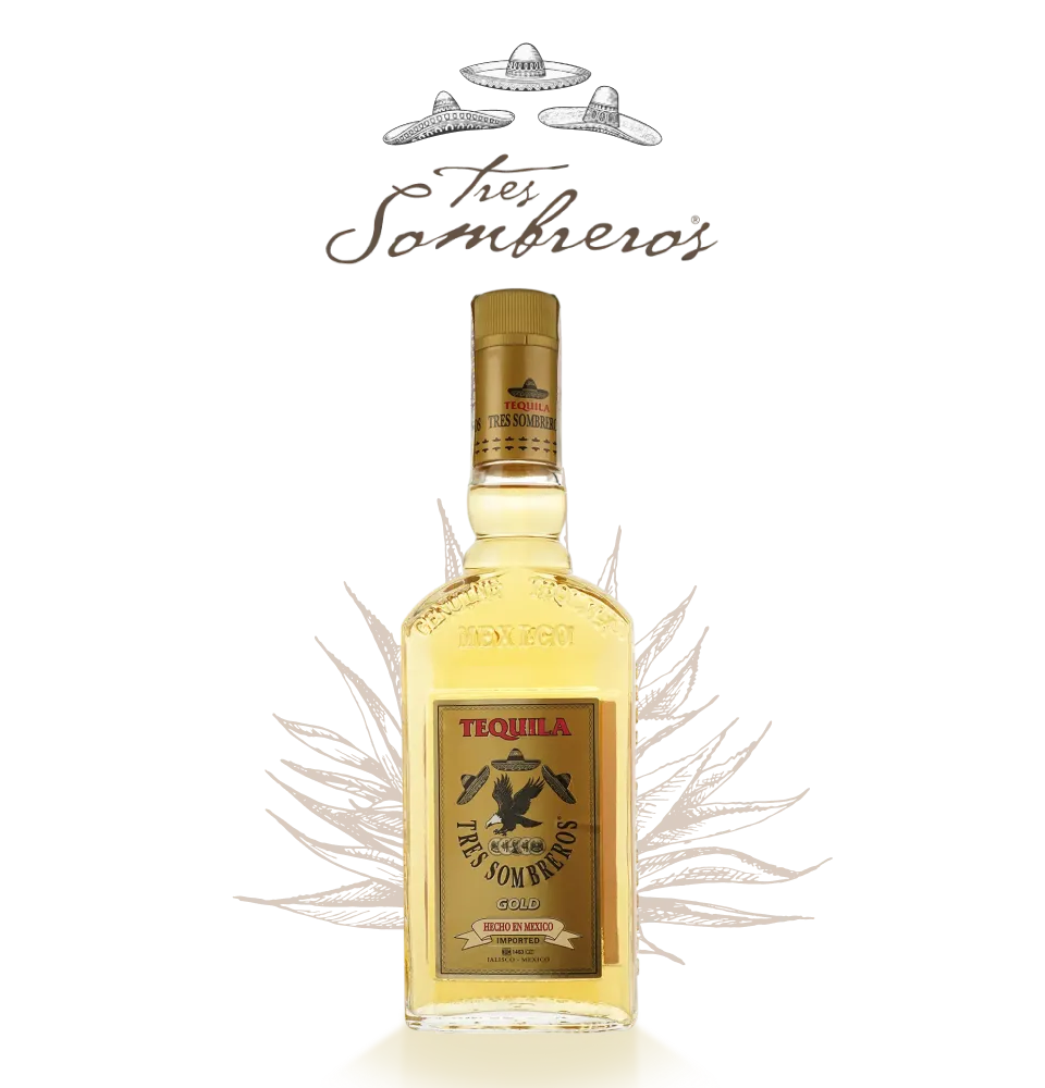 Tres Sombreros Gold - это текила, дистиллированная из чистейшей голубой агавы, ее содержание составляет 81%, тогда как большинство аналогов имеют около 60%. Текилу выдерживают в дубовых бочках, что придает напитку красивый золотистый цвет и чрезвычайной гладкости и мягкости вкуса. Сбалансированный характер делают Tres Sombreros идеальным как для самостоятельного употребления, так и для создания коктейлей.
