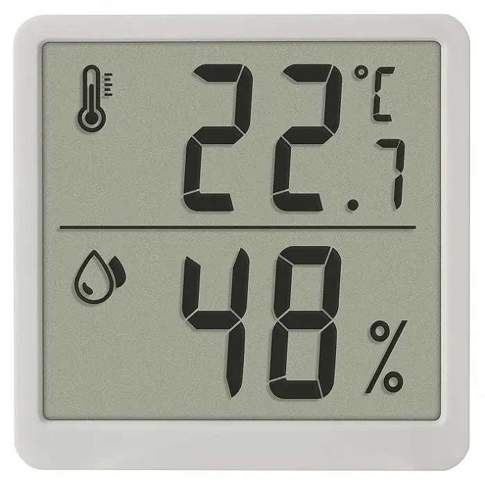 С помощью этого практичного термогигрометра вы можете легко следить за температурой и влажностью в помещении и при необходимости регулировать их с помощью целевого обогрева и вентиляции. Таким образом вы создадите комфортную и здоровую среду обитания и даже сэкономите на отоплении. Для большинства людей комфортная комнатная температура составляет 19–25 °C, а относительная влажность — 40–60 %. Этот диапазон также минимизирует риски для здоровья. Максимальные и минимальные значения сохраняются и отображаются одним нажатием кнопки. Термогигрометр можно прикрепить к металлическим поверхностям с помощью двух маленьких магнитов с тыльной стороны корпуса или установить на горизонтальной поверхности с помощью откидной подставки. Термогигрометр рекомендуется для использования в бытовых жилых помещениях (прихожая, спальня, детская, кухня...). ФУНКЦИИ Для здорового климата в помещении Мониторинг температуры и влажности в помещении Максимальные и минимальные значения С магнитом и подставкой на стол Батарейка в комплекте ЗНАК КАЧЕСТВА TFA Продукция от TFA убеждает своей функциональностью и дизайном.
