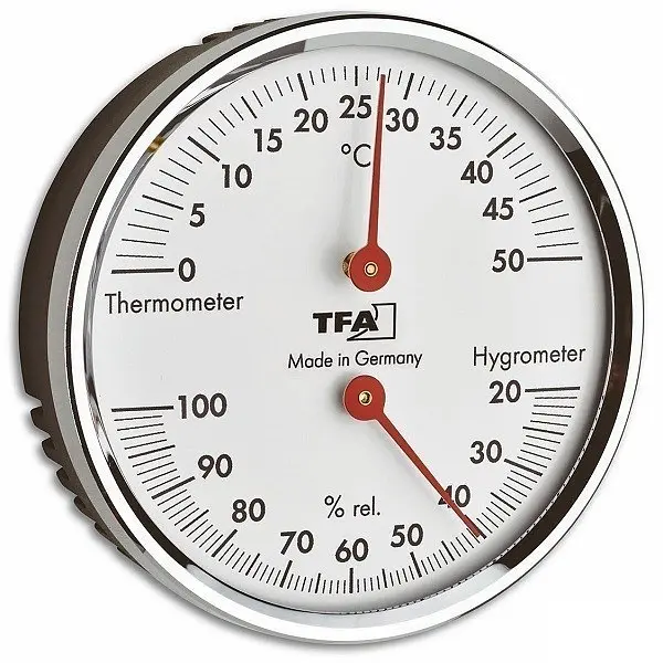 Производитель: TFA Dostmann GmbH & Co.KG, ГерманияОсобенности:Произведено в Германии Для контроля температуры и влажности в помещении Для здорового климата в помещении Биметаллическая технология измерения Красные стрелки Корпус с рамкой из хромированной латуни Не требует батареек Зарегистрированный дизайн TFA Гарантия 3 года Чувствуем ли мы себя хорошо и комфортно дома, во многом зависит от качества воздуха в помещении. Очень важно контролировать влажность и температуру воздуха в помещении, поскольку слишком влажный воздух в помещении способствует появлению опасной плесени; но слишком сухой воздух в помещении может негативно повлиять на наше самочувствие в нескольких аспектах: кожа и дыхательная система могут пострадать и подвергнуться воздействию инфекций, могут появиться аллергия и симптомы астмы. Домашние животные, растения, деревянные полы, антикварная мебель, музыкальные инструменты и книги также нуждаются в надлежащих климатических условиях. Этот компактный термогигрометр с рамкой из хромированной латуни является идеальным прибором для мониторинга климата в помещении. Вы можете легко следить за температурой и влажностью и регулировать их с помощью целевого отопления и вентиляции. Так вы создадите приятную и здоровую среду обитания и даже сэкономите на расходах на отопление. Механизм гигрометра состоит из биметаллической катушки с покрытием, которая вращается вокруг металлической проволоки. Температура измеряется с помощью проверенной биметаллической технологии. Термогигрометр полностью изготовлен в Германии. Основным элементом TFA является собственное производство механических метеорологических приборов. TFA создает продукцию, соответствующую маркировке «Сделано в Германии», с использованием самых современных технологий производства и традиционного ремесленного мастерства. Продукция от TFA убеждает своей функциональностью и дизайном.