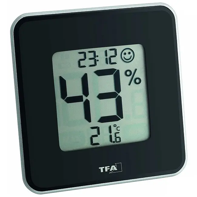 Производитель: TFA Dostmann GmbH & Co.KG, Германия Особенности: Для здорового климата в помещении Индикация температуры и влажности воздуха в помещении Отображение в крупном масштабе значения температуры или влажности Большой дисплей Установка настольная / настенная Макс.-мин. значения Индикатор уровня комфорта в виде смайлика Время Глянцевая поверхность Батарейка в комплекте Зарегистрированный дизайн TFA По крайней мере две трети жизни человека проходят в помещении. Чувствуем ли мы себя хорошо и комфортно дома, во многом зависит от качества воздуха в помещении. В слишком влажных помещениях растет плесень, но чрезмерно сухой воздух может нанести вред нашему здоровью, а также пострадают домашние животные, растения, деревянные полы и антикварная мебель. Этот декоративный термогигрометр является идеальным измерительным прибором для мониторинга климата в помещении. Вы можете легко следить за температурой и влажностью и регулировать их с помощью целевого отопления и вентиляции, когда значения находятся за пределами зоны комфортного уровня. Это создает приятную и здоровую среду обитания и даже экономит расходы на отопление. Если появляется значок смайлика, значения являются идеальными. Вы можете просматривать температуру или влажность в большом формате и получать сохраненные максимальные и минимальные значения одним нажатием кнопки. Термогигрометр «STYLE» также оснащен часами. Глянцевая поверхность в декоративном дизайне делает это полезное устройство еще и красивым аксессуаром для дома.