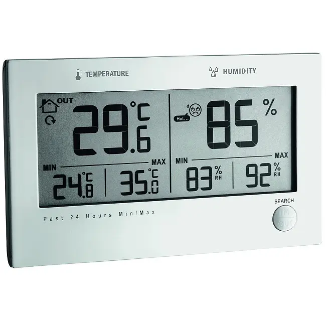 Производитель: TFA Dostmann GmbH & Co.KG, Германия. Особенности: Беспроводная передача внешней температуры и влажности через передатчик. Индикация температуры и влажности в помещении. Индикатор уровня комфорта. Постоянная индикация максимальных и минимальных значений с автоматической сбросом через 24 часа. Сигнализация по температуре и влажности. Символ мороза. Корпус снаружи выглядит как алюминиевый. Зарегистрированный дизайн TFA. Окно открыто или закрыто? Отопление включено? Создать идеальный климат в помещении обычно не так просто. Беспроводной термогигрометр TWIN PLUS от TFA поможет вам. Внутренние датчики базовой станции измеряют температуру и влажность в помещении. Контроль климата в помещении обеспечивает приятную среду обитания, а также предотвращает рост плесени. Отдельный беспроводной датчик измеряет внешнюю температуру и влажность воздуха в вашем районе и, таким образом, предоставляет важную информацию для дома, сада, отдыха и работы. Ежедневные максимальные и минимальные значения отображаются постоянно и автоматически сбрасываются. Значения оцениваются непосредственно, и в зависимости от климата в помещении появляется индикатор уровня комфорта. Сигнал температуры и влажности можно настроить, чтобы вы могли контролировать климат в помещении и поддерживать значения в идеальном диапазоне. Символ мороза появляется на дисплее при приближении более низких температур.