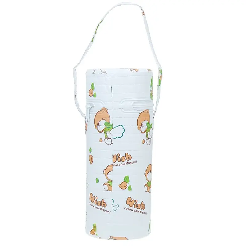Если вам нужно сохранить тепло в бутылке, это можно сделать с помощью термосумки. ПРЕИМУЩЕСТВА: - Сохраняет тепло несколько часов; - Вмещает в себя бутылочку объемом до 300 мл; - Есть ручка, для удобной переноски во время прогулки; - Крышка закрывается на молнию; ХАРАКТЕРИСТИКИ: - Материал основного слоя - кожзам; - Плотный корпус; - Размер отсека для бутылки - 20х8; - Дизайн - мишки на лужайке, мишка спортсмен, мишка в облаках, зоопарк.