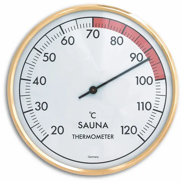 Производитель: TFA Dostmann GmbH & Co.KG, ГерманияОсобенности:Произведено в ГерманииИзмеряет температуру в саунеБиметаллическая технологияБольшая, легко читаемая шкалаПластиковый корпус с золотистым металлическим ободкомТермостойкие материалыСпецификация:Комплектация: Термометр, инструкция по эксплуатацииДиапазон измерения температуры: +20...+120 °CМатериал: Пластик, металлЦвет: Золотистый / БелыйУстановка: НастенныйРазмеры: 162 x 41 x 162 ммВес: 209 гСауна поддерживает вас в форме и здоровье, но только если все сделано правильно. С помощью этого термометра вы можете контролировать температуру в вашей сауне и, таким образом, обеспечивать максимально возможный комфорт. Большая шкала очень хорошо читается, а оптимальный диапазон отмечен цветом. Это позволяет быстро увидеть, поддерживается ли нужная температура в сауне. Термометр с золотистым металлическим ободком полностью изготовлен в Германии. Температура измеряется с помощью проверенной биметаллической технологии. Произведено в Германии. Основным элементом TFA является собственное производство механических погодных инструментов. Мы создаем продукцию, соответствующую этикетке «Сделано в Германии», с использованием самых современных технологий производства и традиционного ремесленного мастерства. Продукция от TFA убеждает своей функциональностью и дизайном. Quality-Product by TFA Dostmann GmbH & Co. KG Germany