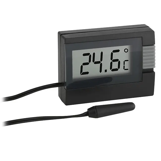 Производитель: TFA Dostmann GmbH & Co.KG, Германия Особенности: Измеряет температуру внутри и снаружи одновременно С водонепроницаемым проводным датчиком (длина провода около 2,5 м) Универсальное использование (автомобиль, холодильник, аквариум) Установка с помощью клейкой ленты или прилагаемой настольной подставки. Маленький и удобный. Батарейка в комплекте. Этот компактный термометр идеально подходит для одновременного измерения внутренней и внешней температуры. Контроль температуры в помещении является важным фактором для комфортной и здоровой среды обитания и помогает экономить энергию. Даже снижение температуры на 1 градус приведет к снижению расходов на отопление на 6%. Когда проводной датчик находится у окна, он выводится наружу для измерения температуры наружного воздуха. Возможности применения термометров с проводными датчиками разнообразны. Водонепроницаемый зонд также позволяет использовать его в автомобиле, холодильнике или аквариуме.