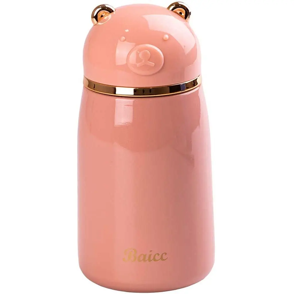 Термос имеет удобную винтовую крышку, которая плотно закрывается и предотвращает протекание. Также в нем есть ручка для переноски, благодаря которой ребенок может легко носить термос с собой. Термос декорирован в виде мишки, это делает его интересным и привлекательным для детей.