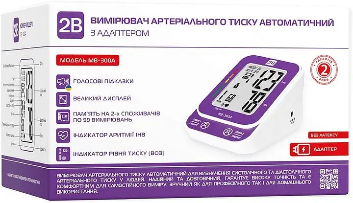 Говорящий измеритель АД автоматический 2B MB-300A с адаптером изготовлен из надежных материалов высокого качества, прошел клинические испытания и рекомендован для людей в возрасте от 18 лет.