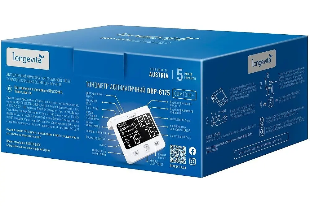 Особенности автоматического тонометра на плечо Longevita DBP-6175 Comfort+ :