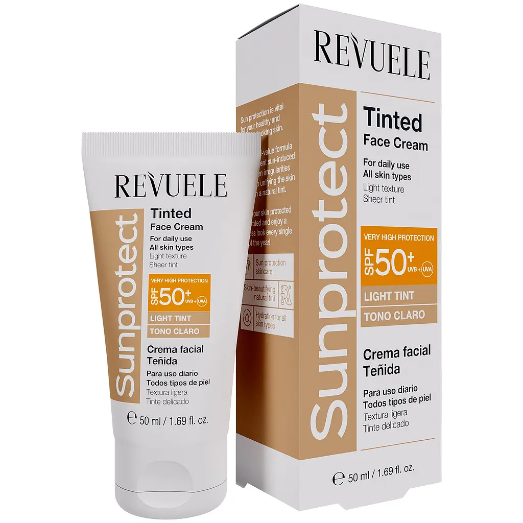 Тонирующий крем для лица Revuele Sunprotect представляет собой продукт, который сочетает в себе свойства солнцезащитного средства и тонального крема.