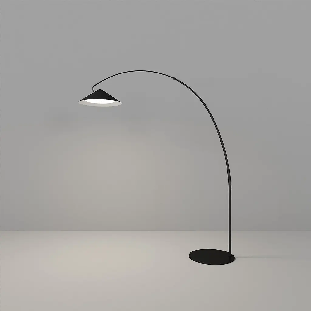 Современный торшер из коллекции Maris отлично подойдет для освещения как жилых, так и офисных помещений. Его минималистичный дизайн дополнит интерьер любого пространства. Конструкция этого светильника состоит из каркаса в форме дуги и большого плафона диаметром 500 мм, который направляет световой поток вниз. Подключение 220 В.