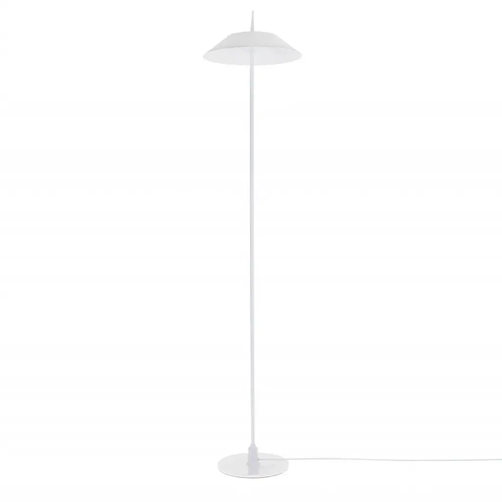 Торшер со встроенными светодиодами BL-824F/7W WW WH представляет собой конструкцию из устойчивой основы и плафона, соединенных между собой тонким металлическим стержнем. Основа торшера также металлическая, поэтому можно не беспокоиться о том, что светильник можно случайно опрокинуть. Торшер окрашен в белый цвет. Плафон имеет конусообразную форму и круглую основу. Использование в качестве источника света светодиодов позволяет не только осветить помещение ярким светом, но и ощутимо сэкономить на электроэнергии. К тому же, LED работают значительно дольше ламп накаливания до 50 тыс. часов. Модель подойдет для размещения в помещениях, интерьер которых выполнен в стиле лофт, техно, минимализм и другие современные. Диаметр плафона 300мм. Диаметр основания 220мм. Шнур изготовлен из пластика. Длина шнура 2650мм.