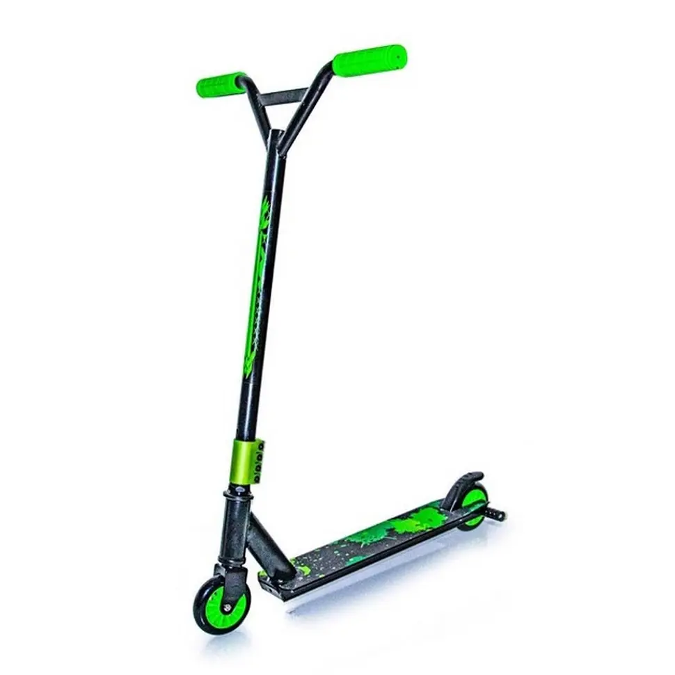 Трюковый самокат Scale Sports – скутер в линейки трюковых самокатов известного американского бренда Scale Sports. Данный самокат сбалансированный, имеет строгий дизайн, а также имеет легкий вес, и выдерживает нагрузку до 80 кг. Особености : -Дека, гарнитура, руль , все отлично подготовлено для самых сложных фристайл трюков в скейт-парке или на улицах; -Руль: материал - алюминиевый сплав, 4х болтовый зажим; высота руля - 85 см; -Дека: материал - алюминиевый сплав; длина деки - 48.5 см; -Колеса 100 мм ,Hi-rebound 82A; -Подшипники - АВЕС 7; -В комплект входит две пеги Характеристики: -Тип товара: самокат трюковый -Уровень мастерства: средний. -Возраст: 7+ -Материал деки: алюминий 6061 T6. -Максимальная нагрузка: 80 кг -Жесткость колес: 82А -Диаметр колес: 100 мм -Подшипник: ABEC-7 -Рулевой хомут: четырехболтовый -Габариты деки: 48.5х10 см -Материал руля: алюминий 6061 Т6 -Тормоз: ножной задний Flex Fender -Сердечник колес: прочный спец.пластик -Общая высота: 85 см -Высота руля от платформы : 79 см -Ширина руля: 52 см -Вес: 3.5 кг