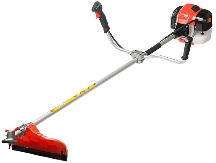Бензиновый триммер Tekhmann BCG-2215 S оснащен 2-тактным двигателем объемом 52 см³ (3.1 л.с.) с воздушным охлаждением. Максимальная скорость – 8500 об/мин. Ширина кошения леской – 480 мм, ножом – 255 мм. Емкость топливного бака – 1.2 л. Вес двигателя – 8.1 кг, штанги – 1.2 кг. Оснащен ручным стартером, электронным зажиганием и удобным управлением дросселем.