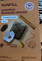 Sunfill фінікові іриски виглядають як корисна альтернатива звичайним цукеркам, і частково це справді так. Смак м’який, виразно фініковий, з природною солодкістю без хімічного присмаку. Текстура тягуча, але не надто липка, жувати комфортно. До плюсів можна віднести простий склад і відчуття, що їси не просто “цукор заради цукру”. З мінусів солодкість швидко набридає, і яскравості смаку могло б бути трохи більше.