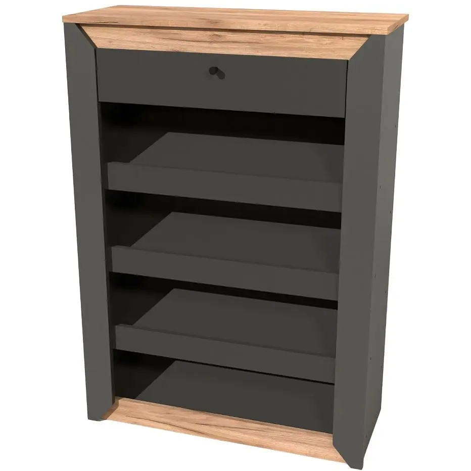 До конца акции 156 днейТумба для обуви Эверест из коллекции Нордик в прихожую или в коридор предоставляет удобное и эстетическое место для хранения вашей обуви, при этом не занимая много места в вашем интерьере. Четыре открытых полки для удобного размещения обуви разных типов и размеров позволяют удобно организовать и легко выбрать нужную пару. Один выдвижной ящик, функционирующий на телескопических направляющих, для хранения мелких предметов и аксессуаров.