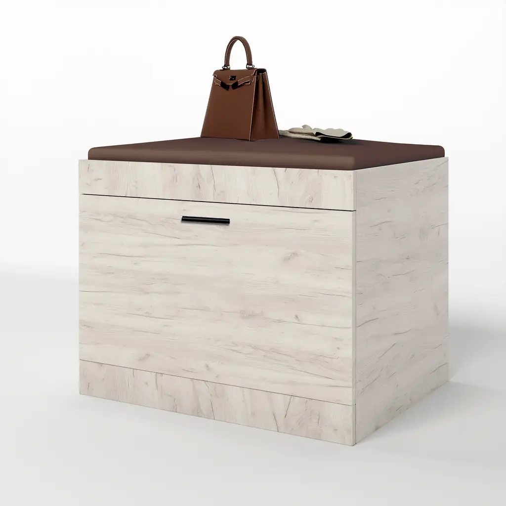 Простая конструкция состоит из одного отделения для хранения до 6-х пар зимней обуви с откидной вниз дверцей. Дополнительно к тумбе можно приобрести вешалку Соната для верхней одежды, создав небольшой гарнитур для прихожей.