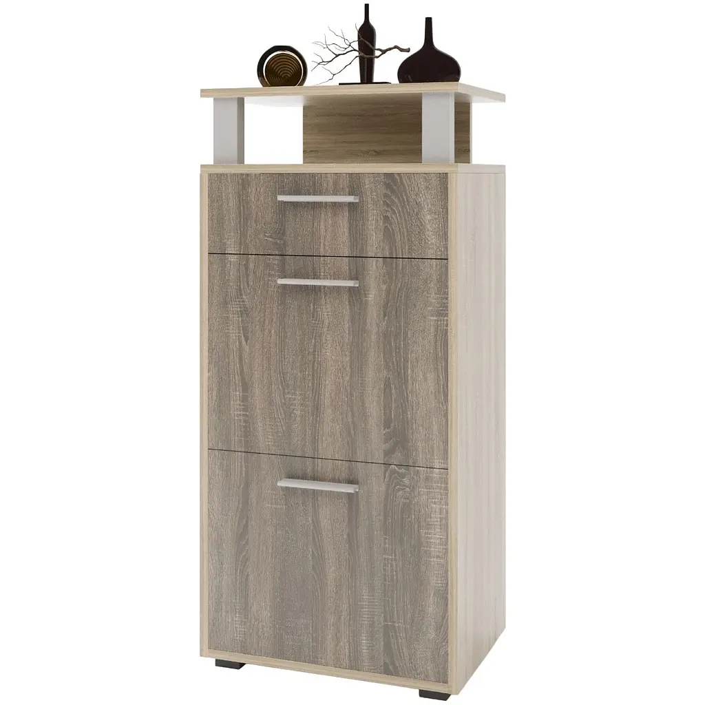 Для хранения обуви предназначено два отделения, куда поместится до 8 пар зимней обуви, и один выдвижной ящик, в который можно положить перчатки и другие необходимые аксессуары. На верхней вместительной столешнице можно расставить повседневные мелочи и предметы декора.