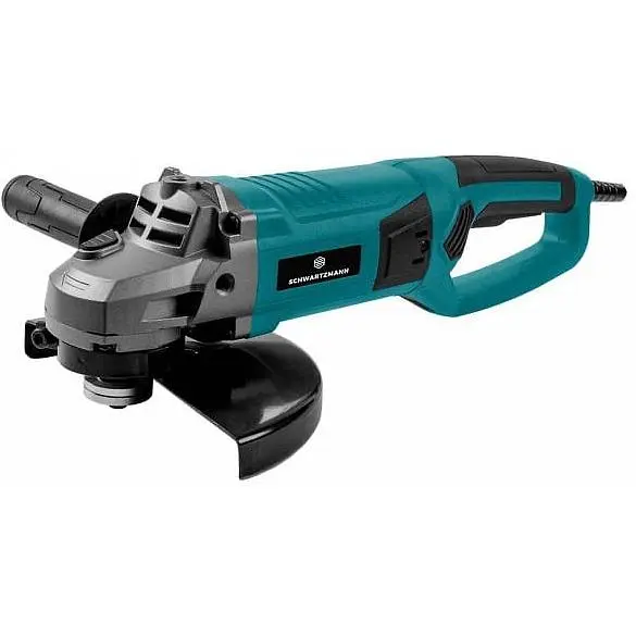 Благодаря легко регулируемому быстро зажимному защитному кожуху, человек, работающий с инструментом, защищен от искр и улетающих частиц. Также в комплекте идет 3-х позиционная дополнительная ручка. Более эффективному шлифованию способствуют эргономичная поворотная задняя рукоятка со встроенной кнопкой включения, выключение с длинным курком и плавный пуск.