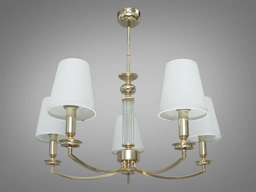 Люстра с абажурами на 5 ламп - это элегантное и стильное дополнение к интерьеру, которое придаст помещению теплоты и атмосферности. Количество ламп: Люстра оснащена 5 лампами, которые обеспечивают достаточное освещение и создают приятную атмосферу в помещении. Абажуры: Абажуры изготовлены из белого текстиля, создавая мягкий и приятный свет. Форма абажуров полуконусная, что придает стилизованность и оригинальность дизайну. Металлический каркас: Каркас люстры изготовлен из металла и гальванически покрыт либо золотистым, что создает впечатление роскоши и теплоты, либо хромовым, придавая современный и стильный вид. Размеры: Ширина люстры составляет 71 см, что делает ее идеальным вариантом для средних и больших помещений. Центральная стойка: Центральная стойка украшена стеклянным цилиндром, который может отражать свет, добавляя дополнительный блеск и изящество дизайну. Люстра не только обеспечит вам необходимое освещение, но и станет важным декоративным элементом в вашем помещении, создавая приятную атмосферу и изысканный вид. Эта люстра подходит для различных интерьеров и стилей. Классический интерьер: Люстра идеально подходит для классических интерьеров, где каркас в золотистом или хромированном исполнении придает роскошь, а белые абажуры и стеклянный элемент выглядят элегантно. Современный дизайн: В современных интерьерах, особенно с хромированным каркасом, эта люстра может добавить стильности и современного вида. Спальня: В спальне эта люстра создаст атмосферу спокойствия и уюта благодаря белым абажурам и мягкому свету. Гостиная или столовая: Благодаря размерам и дизайну, люстра подходит для больших помещений, таких как гостиная или столовая. Рестораны и отели: Золотистый или хромированный дизайн и элегантность позволяют использовать эту люстру в ресторанах или отелях для создания впечатления роскоши. Эклектичный стиль: В эклектичных интерьерах эта люстра может служить прекрасным сочетанием различных элементов и стилей благодаря своим универсальным характеристикам. Эта люстра является универсальной и может выглядеть уместно в различных контекстах, добавляя стиль и роскошь в любое помещение. Лампы в комплект не входят.