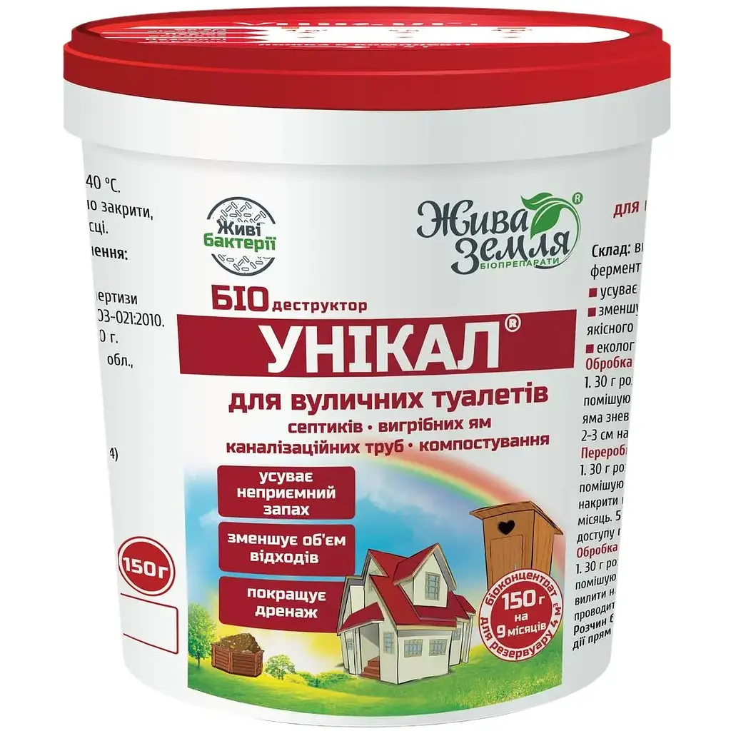 Средство Жива Земля Уникал подходит для ускоренной переработки органических отходов (фекалий, пищевых и растительных отходов) в выгребных ямах, септиках, уличных туалетах, канализационных трубах. Для ускоренной переработки органических отходов в компост.