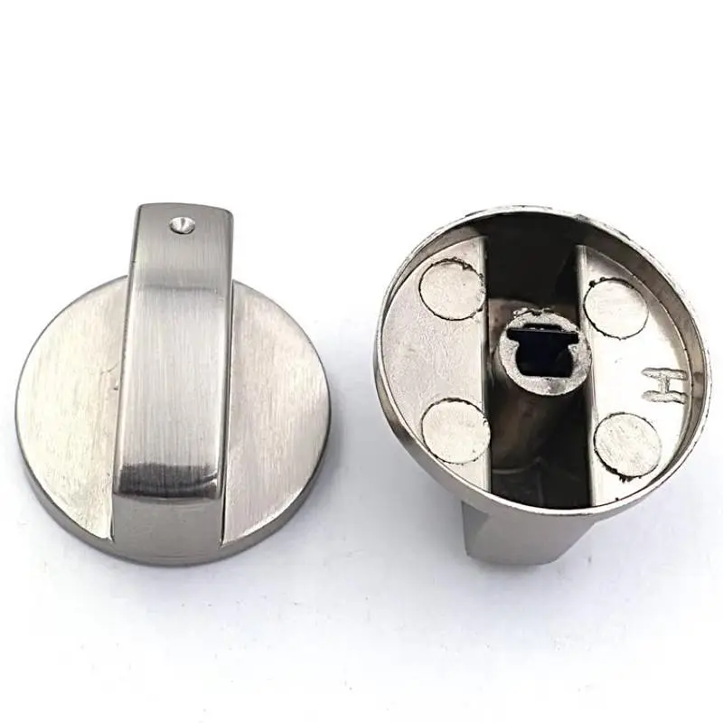 Металлическая серебристая ручка, переключатель для плиты, духовки, варочной поверхности.