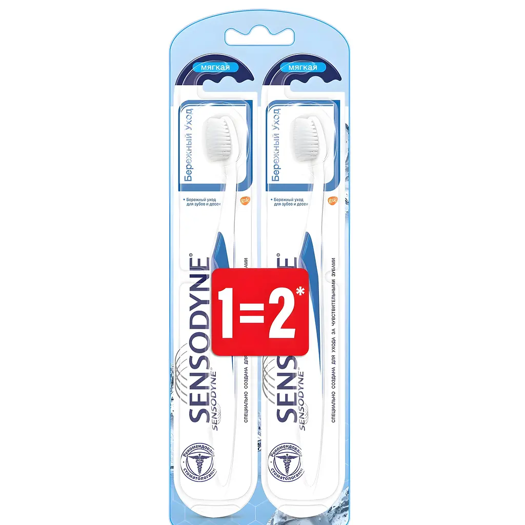 Зубная щетка Sensodyne Бережный Уход специально разработан для людей с чувствительностью зубов.