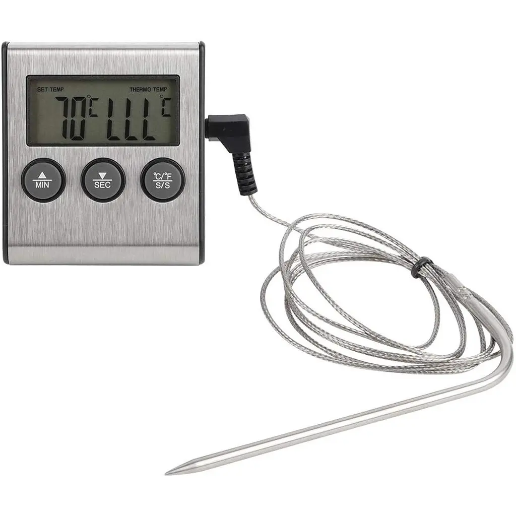 Щуп термометра позволяет измерять температуру в диапазоне от 1 до 250°C, показания можно выводить как в градусах Цельсия, так и в Фаренгейтах. Термометр также имеет функцию таймера. При достижении целевой температуры или желаемого времени приготовления, термометр Grilli 733540 подаст звуковой сигнал. Щуп термометра размером 13 см изготовлен из пищевой нержавеющей стали.
