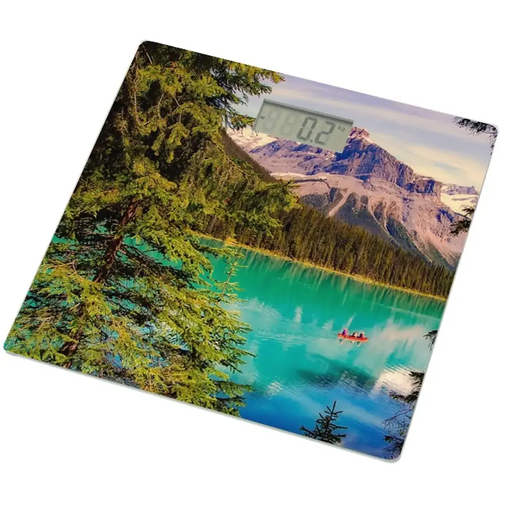 Изготовленные из прочного стекла и ABS-пластика весы имеют современный дизайн с изображением гор, что добавляет эстетики. Благодаря максимальному весу 180 кг, точности до 0,1 кг и компактным размерам 28х28 см, они являются удобным решением для контроля веса.
