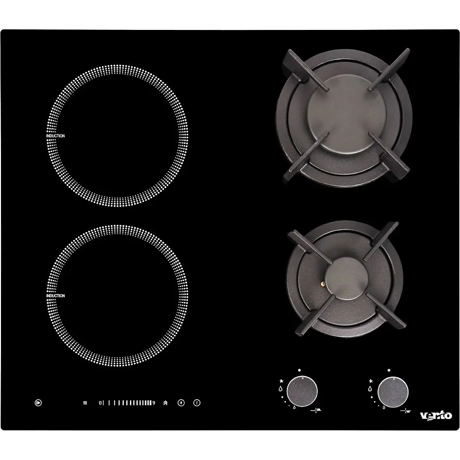 Варочная поверхность HG622 B9G RCS I (BK) Варочная поверхность комбинированная HG622 B9G RCS I (BK) - это плита с двумя индукционными зонами нагрева и двумя газовыми конфорками. Такая поверхность будет незаменимой для загородных домов, дач и домов, в которых есть перебои с подачей какого-либо из источников питания. Купить комбинированную варочную поверхность HG622 B9G RCS I (BK) в официальном магазине ТМ Ventolux! Газово-индукционная поверхность не только эффективная за счет наличия выбора на чем готовить, но и имеет весьма привлекательный дизайн. Черное стекло отлично подходит под различные вариации кухонь, при этом еще большей изюм технике предоставляют индукционные зоны нагрева, которые имеют круглую форму и помеченные белым цветом. Модель оснащена функциями удержание уровня нагрева, быстрым нагревом (BOOSTER), блокировкой от детей, а также Stop & Go - пауза в работе. При повторном нажатии на эту кнопку работа варочной панели восстановится автоматически с теми же параметрами. Ключевые параметры комбинированной плиты HG622 B9G RCS I (BK): Модель имеет ширину 60 см. Поверхность изготовлена из жаропрочного стекла черного цвета ORKLI (Made in Spain), дополненная поворотными ручками и чугунными решетками идентичного цвета. Для управления индукционными конфорками доступны сенсорные кнопки с системой установления уровня мощности зоны нагрева с помощью сенсорного слайдера. Готовить пищу можно на 2 газовых конфорках и 2 индукционных зонах нагрева. В варочной поверхности на газовых конфорках установлена система газ-контороля и электрического поджога. Ручки управления удобные и надежные - металлические. Индикатор остаточного тепла сигнализирует о том, что зоны нагрева работают или еще полностью не остыли. Гарантия - 3 года. Комбинированная варочная поверхность HG622 B9G RCS I (BK) будет идеальным дополнением любой кухни, особенно, если Ваш дом расположен в местах, где часто случаются перебои с подачей газа или электричества.