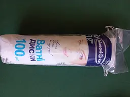 Хороші ватні диски. Щільні, не залишають ворсинки. По акційній ціні беру декілька упаковок. Мінус за те, що з упаковки дістається декілька дисків за раз, або треба підтримувати іншою рукою упаковку, щоб дістати один.