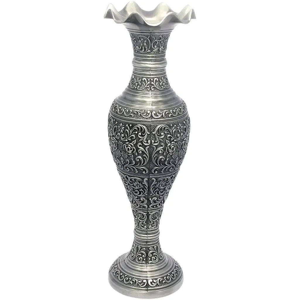 Изготовленная из высококачественного металла, ваза отличается своей прочностью и долговечностью. Серебристый оттенок придает ей универсальности, гармонично сочетаясь с современными, минималистичными или хай-тек интерьерами. Изящный узор на поверхности добавляет аксессуару эстетической привлекательности и уникальности.