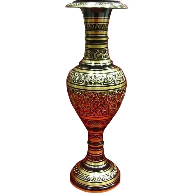 Ваза имеет универсальную высоту, что позволяет использовать ее для создания цветочных композиций или как самостоятельный декоративный элемент. Ее теплый металлический оттенок придает интерьеру ощущение роскоши и благородства, гармонично сочетаясь со стилями классики, модерна или винтажа.