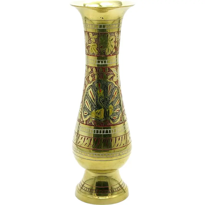 Ваза имеет универсальную высоту, что позволяет использовать ее для создания цветочных композиций или как самостоятельный декоративный элемент. Ее теплый металлический оттенок придает интерьеру ощущение роскоши и благородства, гармонично сочетаясь со стилями классики, модерна или винтажа.