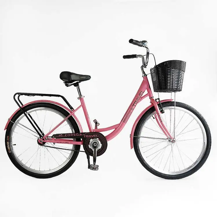 Городской велосипед Corso Travel TL-26611 26" + корзина, односкоростной Комфортный городской велосипед для ежедневных поездок и прогулок. Металлическая корзина спереди очень удобна для вещей. Простая и надежная односкоростная конструкция. Идеальный выбор для тех, кто ценит удобство и практичность!