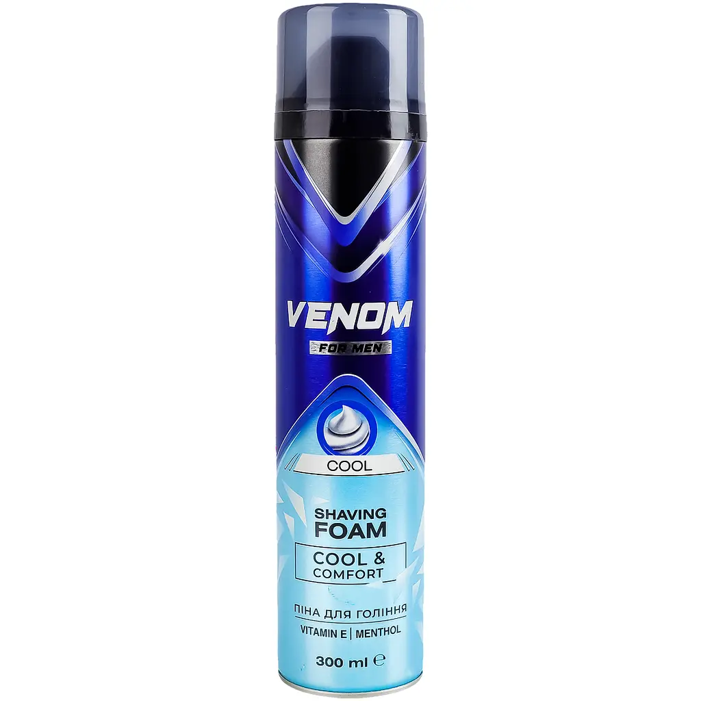 Пена для бритья Venom Cool смягчает щетину для более тщательного бритья и улучшает скольжение бритвы. Обладает приятным ароматом. Благодаря витамину Е кожа интенсивно увлажнена после бритья. Ментол обладает противомикробным действием, обеспечивает приятный эффект прохлады во время процедуры, а также препятствует появлению раздражений. Подходит для всех типов кожи. Не содержит парабенов и спирта.