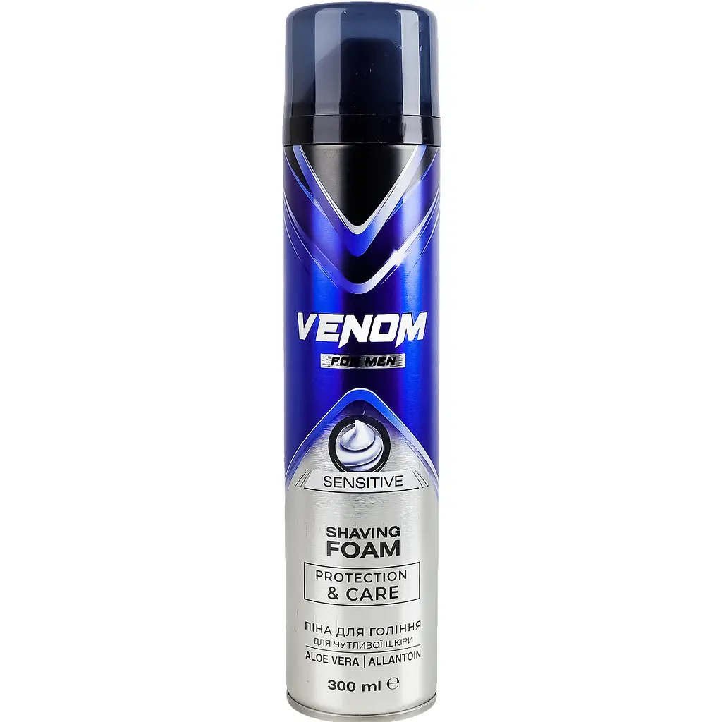 Пена для бритья Venom Sensitive обеспечивает комфортное и бережное бритье без раздражения для всех типов кожи. В состав пены входит аллантоин и экстракт алоэ вера, способствующие устранению воспалений, оказывают помощь в заживлении микропорезов, увлажняют, смягчают и восстанавливают кожу. Не содержит парабенов и спирта.