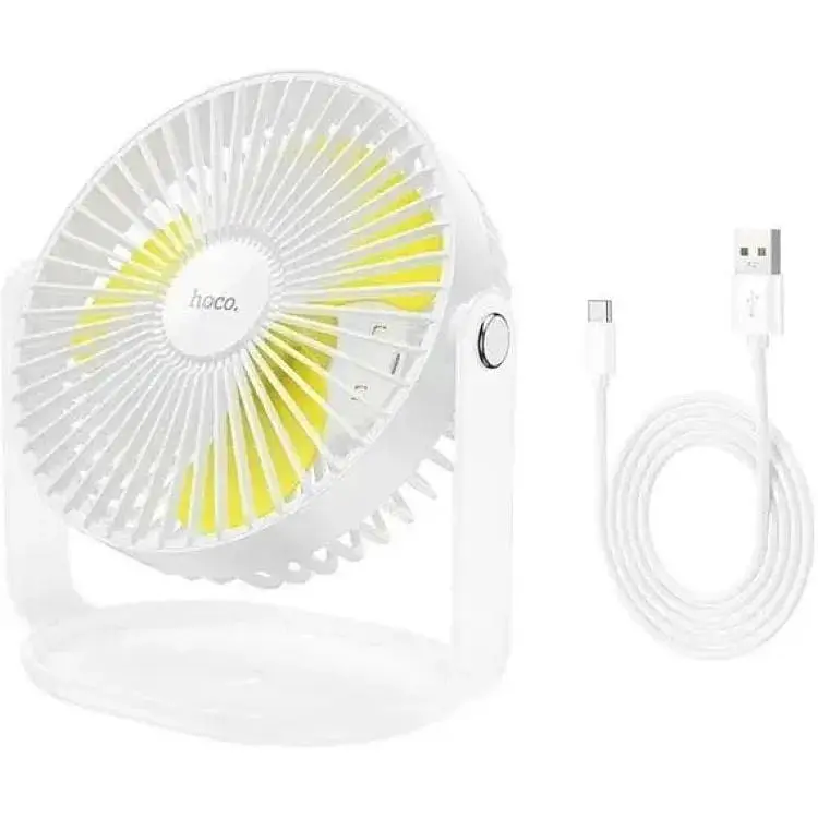 Мощный многофункциональный настольный вентилятор HOCO F14 станет отличным вентилятором, который можно взять с собой на отдых, ведь в него встроена светодиодная подсветка — его можно использовать как светильник для сна. Вы можете регулировать скорость ветра на 4 скорости, от слабой до мощной одним нажатием кнопки.