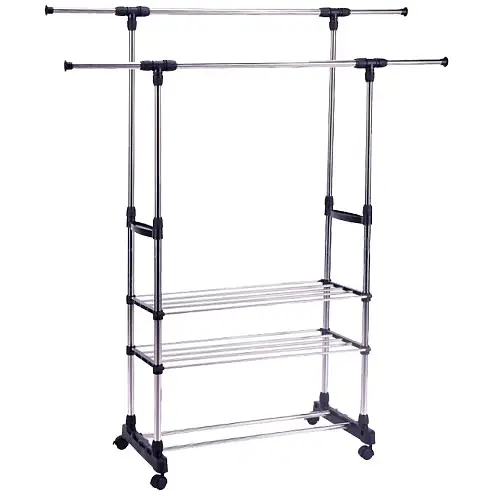Вешалка-стойка двойная телескопическая для одежды Triple Stand Hanger полностью сборная, ее можно удлинить и сделать выше, или ниже.