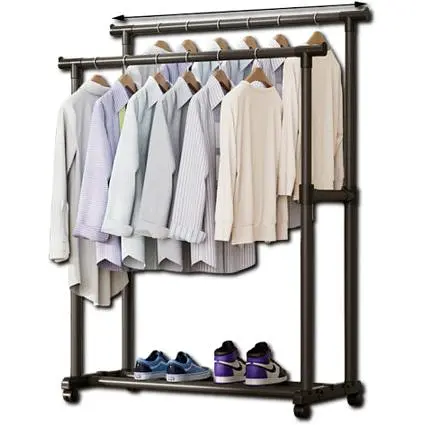 Выберите вешалку-стойку Double Pole для удобства и порядка в вашем гардеробе! Сделайте свое пространство более функциональным благодаря этой телескопической вешалке, которая подходит для любого интерьера и стиля жизни.