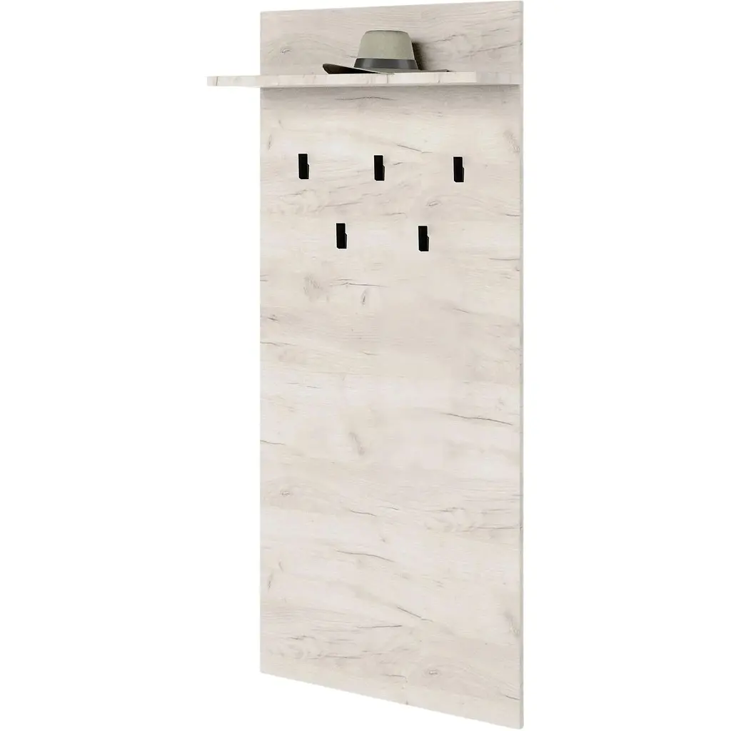 Планка вертикального расположения, где расположены пять двойных крючков для верхней одежды. Сверху есть полка для головных уборов.