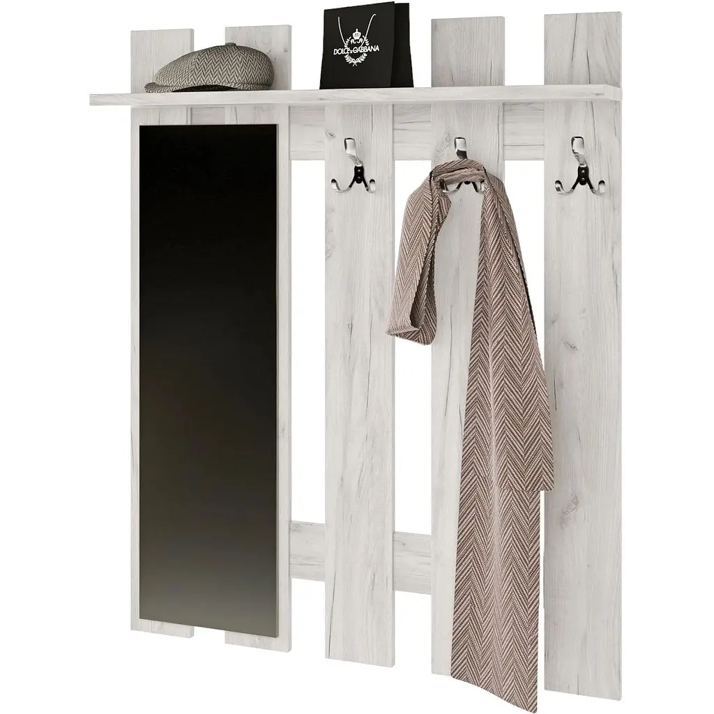 Вешалка изготовлена из качественного ламинированного ДСП, качественного материала и имеет крепкую конструкцию, что обеспечивает ее долговечность и надежность.