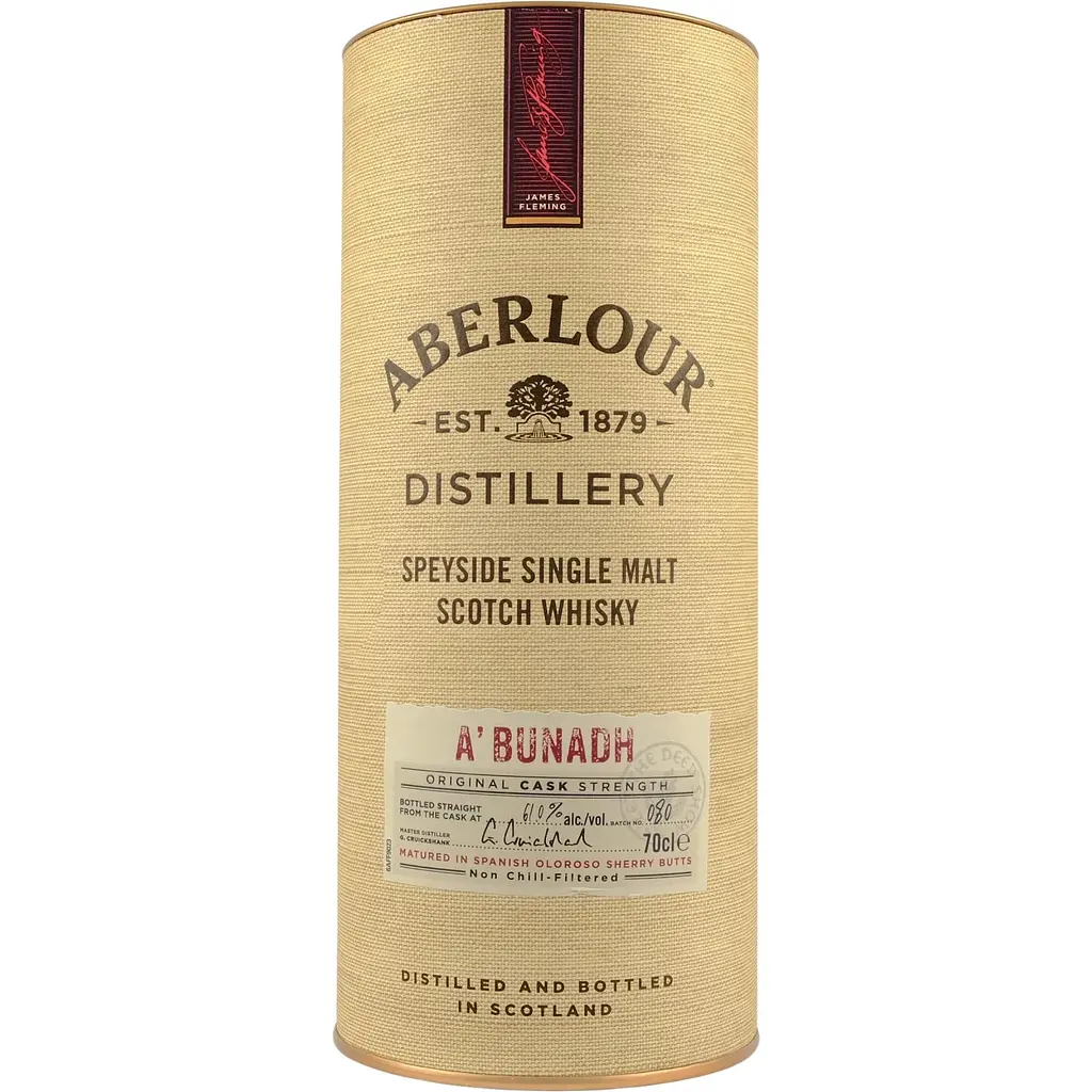 Виски Aberlour имеет глубокий темно-янтарный цвет, что указывает на его мощную выдержку в бочках из-под хереса. Аромат напитка открывается интенсивными нотами специй, темного шоколада, сухофруктов (изюма, инжира) и корицы, с дополнительными оттенками меда и ванили, придающими ему глубины. Во вкусе Aberlour A'Bunadh проявляется сильная специальность, гармонично сочетающаяся со сладкими оттенками сухофруктов, темного шоколада и карамели. Дубовые ноты дополняют этот многогранный вкус, придавая богатство и сложность виски. Послевкусие долгое и теплое, с выразительными нотами хереса, пряностей и темного шоколада.