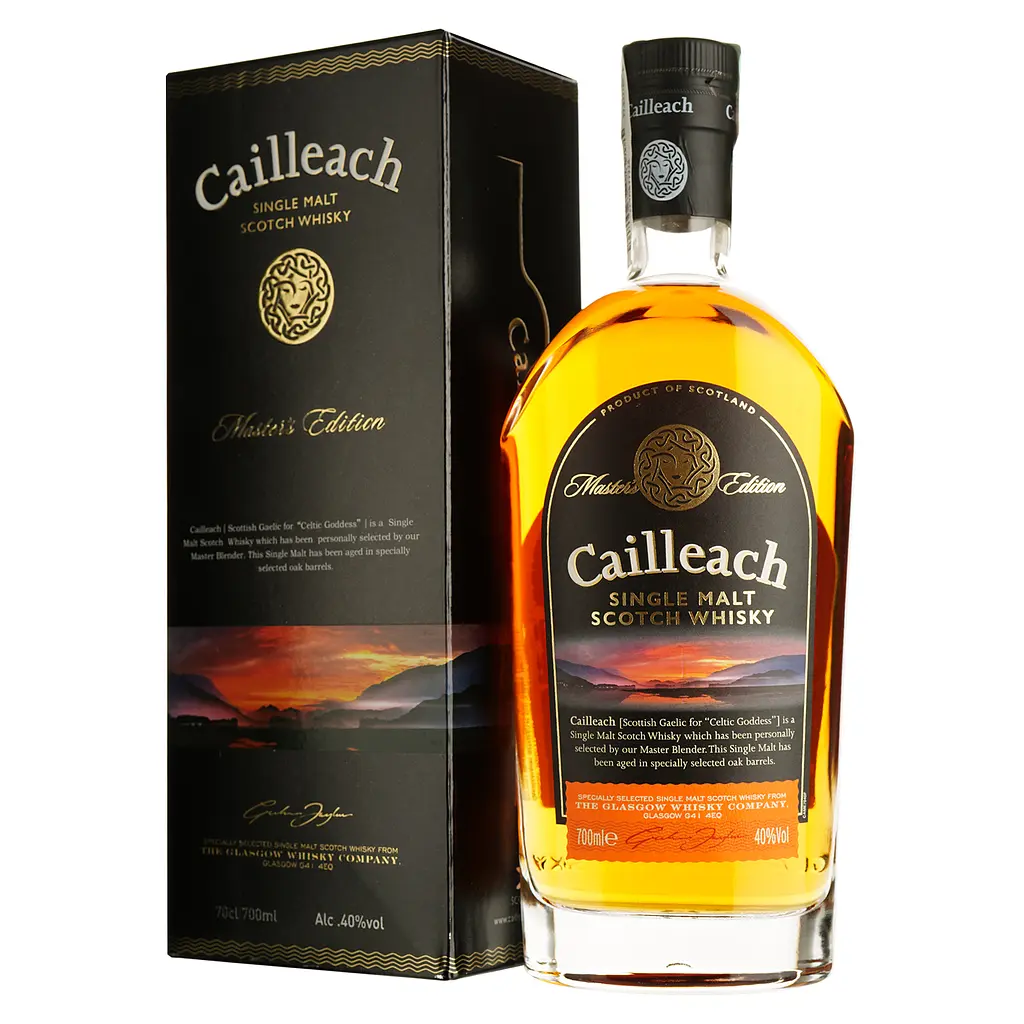Виски Cailleach Master's Edition Single Malt демонстрирует золотисто-янтарный цвет. Его сложный, но деликатный и сдержанный аромат наполнен нюансами сочных яблок и персиков, молочного шоколада, ванили и свежескошенной травы с каплей меда. Сладковатый вкус раскрывается нотами сушеного имбиря, солода и специй. Послевкусие пряное и шоколадное.