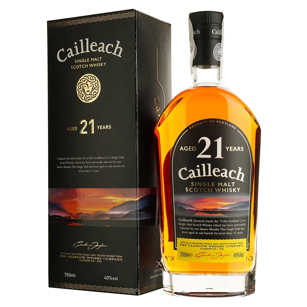 Виски Cailleach Single Malt Scotch Whisky 21 yo - выразительный многогранный односолодовый виски, близкий по стилистике к Синглтону 18 yo и Гленфаркаласу 21 yo. Создан мастерами дела на винокурне в самом сердце Гленс-оф-Спейсайд. Виски выдерживают в лучших дубовых бочках, которые придают глубокую сложность, что прекрасно сочетается с насыщенными цветами осени.
