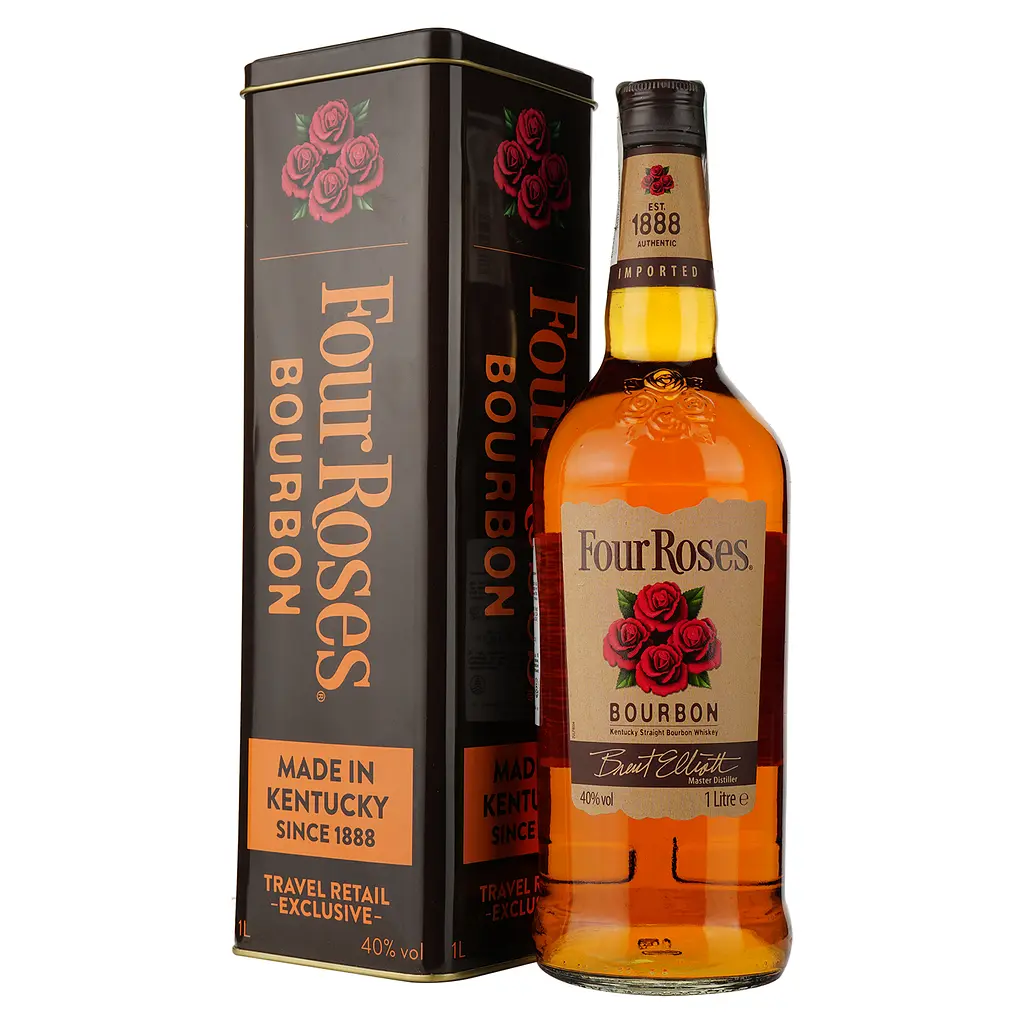 Four Roses Kentucky Straight Bourbon — це класичний бурбон із м’яким і гармонійним смаком. У першому ковтку відчуваються нотки ванілі, меду, карамелі та стиглих фруктів, які плавно переходять у легкий пряний післясмак із натяком на дуб. Аромат багатий, з відтінками ванілі та дубової бочки, які відразу занурюють у традиції Кентуккі. Напій чудово підходить для вживання у чистому вигляді, з льодом або як основа для класичних коктейлів, таких як Old Fashioned чи Whiskey Sour. Four Roses залишається універсальним вибором як для новачків, так і для досвідчених поціновувачів бурбону.