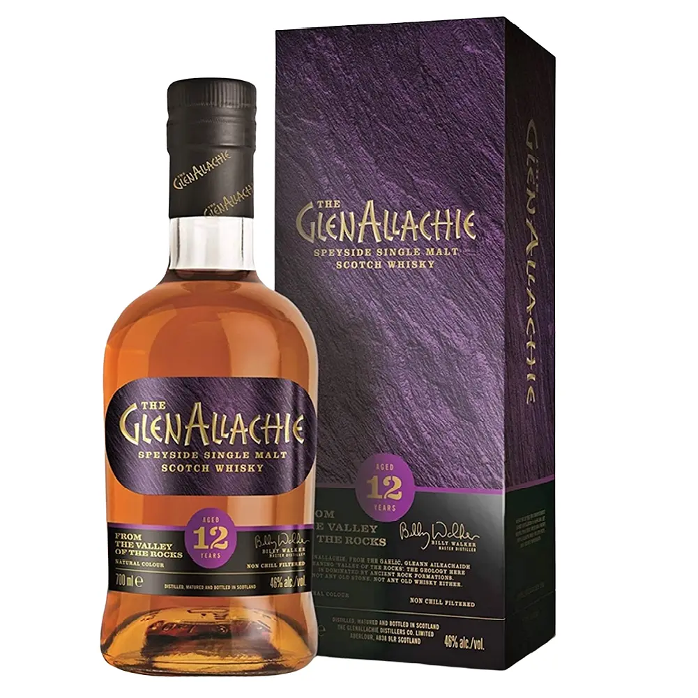 Виски GlenAllachie 12 yo Single Malt Scotch Whisky золотисто-янтарного цвета. Демонстрирует многогранный, роскошный аромат, сотканный из нот апельсина, лимона и вереска. Раскрывается полным, округлым вкусом с нотами ириски, кленового сиропа, пряностей и дуба. В длительном послевкусии слышны акценты тмина, коричневого сахара и черного перца.