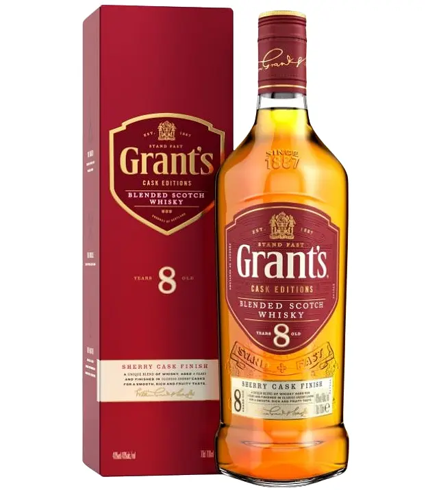 Виски Grant's (Грантс) Sherry Cask 8 Years Old - для 8-летней выдержки которого производитель использует дубовые бочки, после чего следует процесс старения в бочках из-под хереса Олоросо.