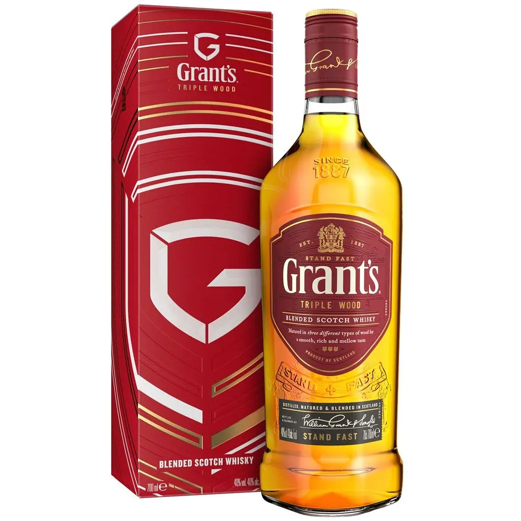 Виски Grant`s (Грантс) Triple wood Blended Scotch Whisky – для производства использовано три вида бочек: новые дубовые бочки, наделившие виски пикантной пряностью, американские дубовые бочки, благодаря которым вкус стал очень гладким и наполнился ванильными нюансами, а также бочки из-под бурбона, обеспечившие более насыщенный и мягкий вкус со сладостью коричневого сахара.